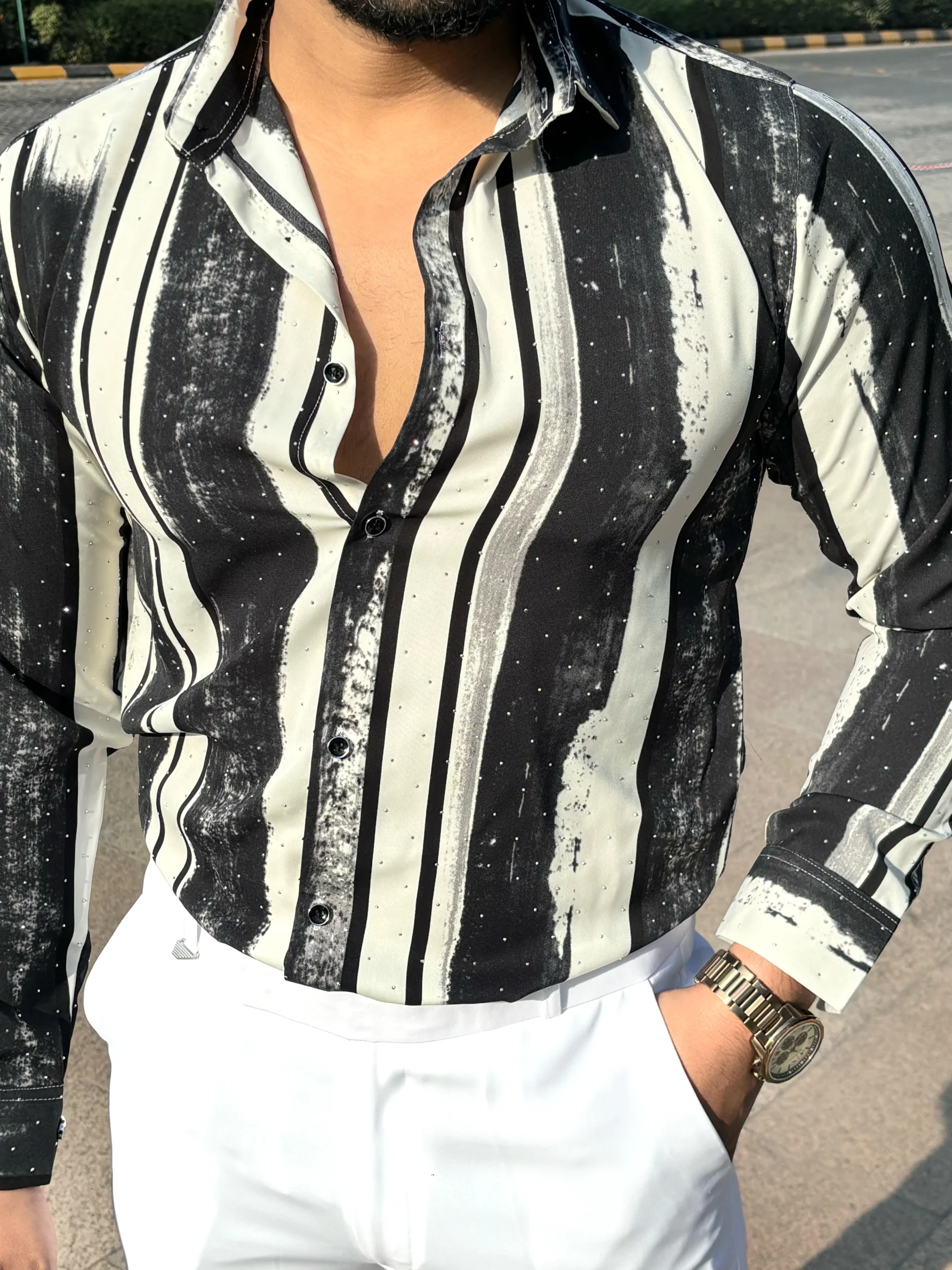 UA Charcoal and White Striped with Swarovski Regular fit Party Shirt
