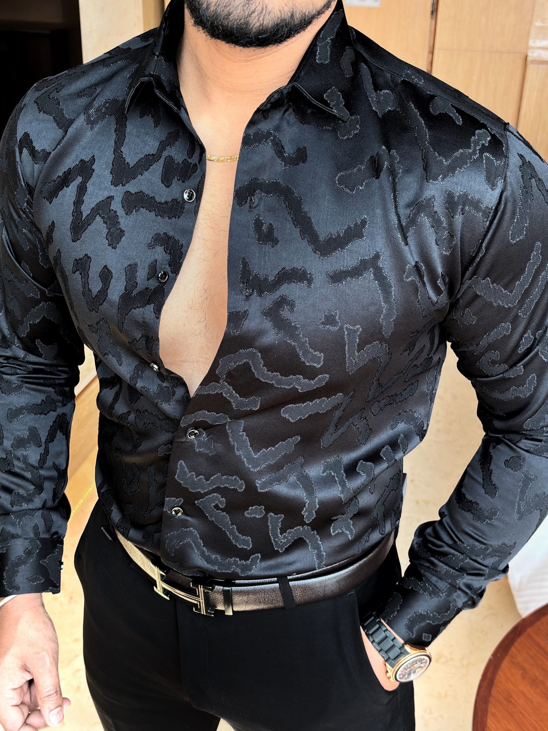 The intricate detailing of the feline design paired with a sleek modern fit makes this shirt a showstopper for festive gatherings, parties, or casual outings. Whether paired with tailored trousers or your favorite denim, this shirt adds an undeniable charm to your wardrobe.